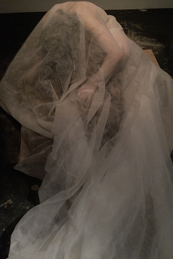 Presenning, fiberduk, lera, kroppsfärg, rörelser, röst
